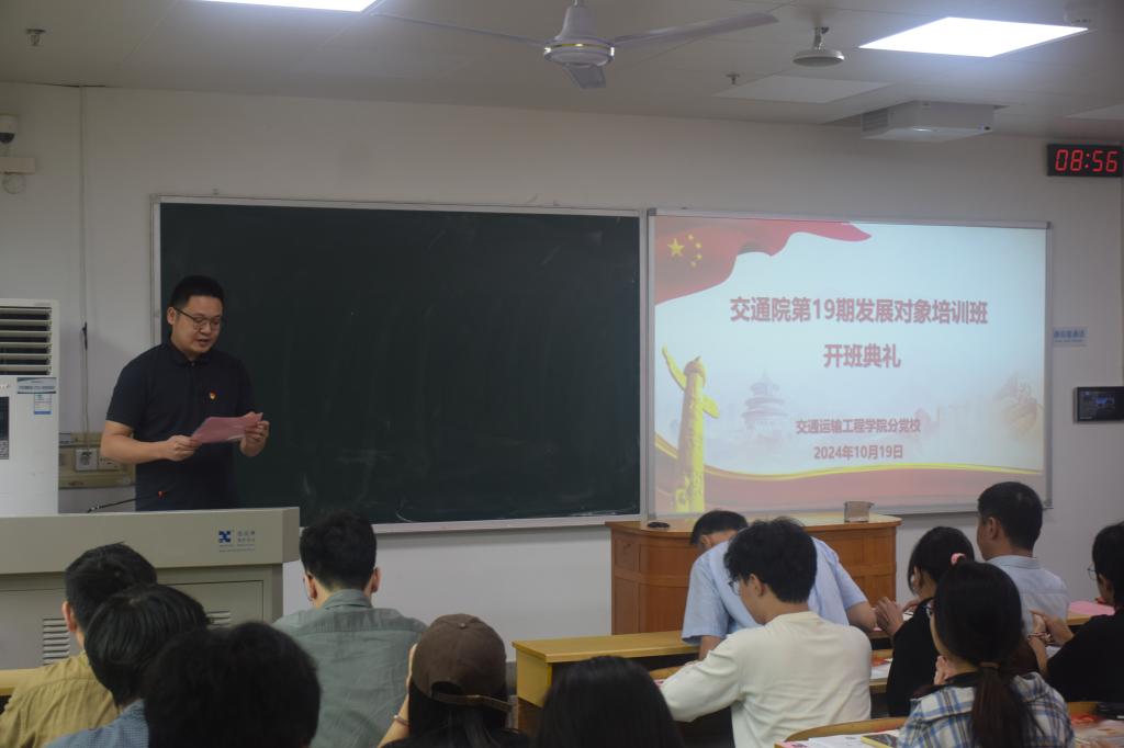 10月19日上午,色情app 分党校第19期发展对象培训班开班典礼在世纪楼A102室举行。交通院党委书记袁世平、副书记李苑以及交通院班导师丁德孝参加了本次典礼,典礼由丁德孝老师主持。 典礼第一项,全体起立,...