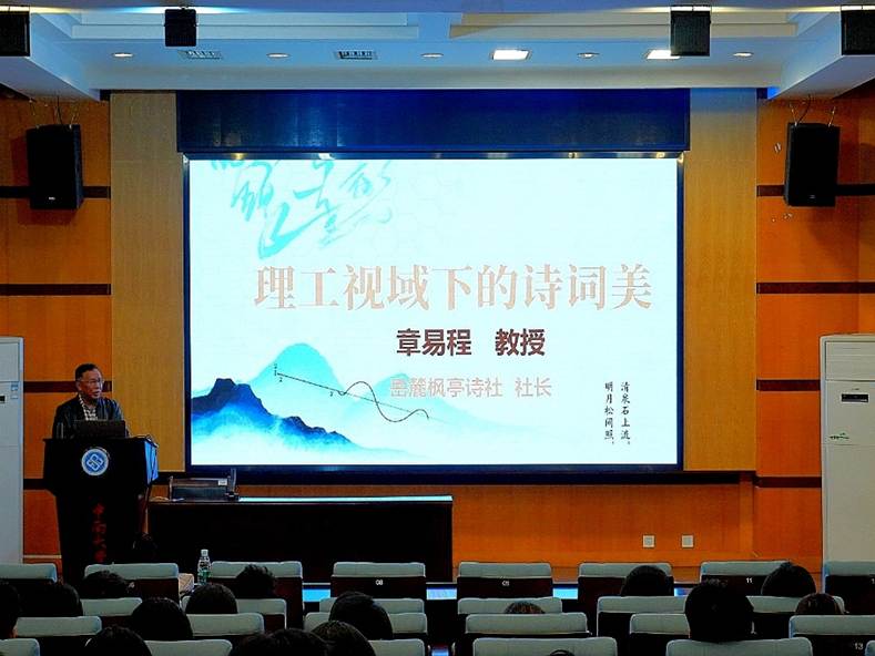 于天心校区世纪楼C201国际报告厅召开《理工视域下的诗词美》主题讲座,本次讲座特邀章易程教授担任主讲人,为在场学子带来一场融汇文理、贯通古今的思想与美学盛宴。色情app团委书记蔡明旭与众多学生一同聆听了讲座。