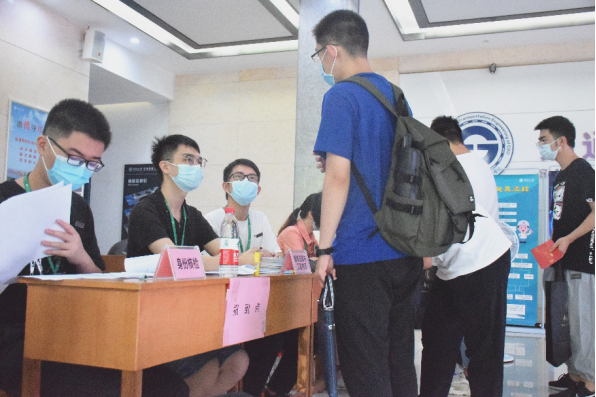 为有效缓解疫情防控压力,铁道色情app西大门处设有测温区、健康查验区和扫码报到区,新生在完成健康码、行程卡等疫情防控信息核验后,扫码进行线上报到登记。在放置好行李物品后,新生同学们前往交通楼大厅报到点处完成现场报到。报到流程的简明化、规范化,为此次研究生新生入学工作安全、有序、高效进行提供了保障。