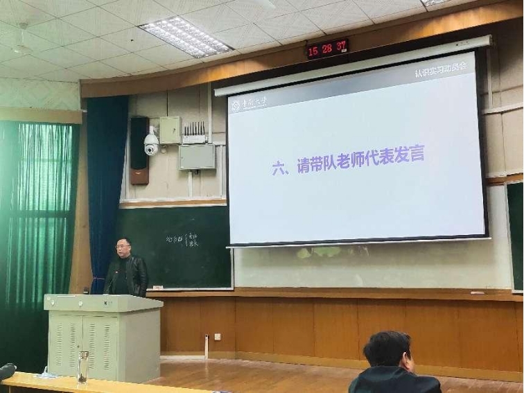 会议最后,辅导员郑繁简老师发言,郑老师十分关心同学们的安全问题,强调了在实习期间的各项纪律,叮嘱同学们尊重老师、遵守纪律,也希望同学们能够合理规划个人的时间,及时调整状态,安全、高效地完成实习任务,为自己的未来储备知识、储备力量。