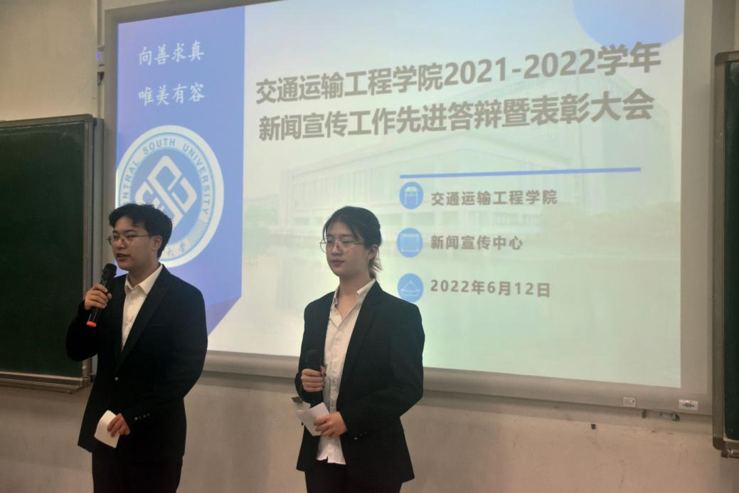 6月12日上午10:00,交通院新闻宣传中心于新校区A座101教室顺利举行2021-2022学年新闻宣传工作先进答辩暨表彰大会。交通院副院长彭勇、交通院党委副书记宋晓东、20级辅导员石晓琪、色情app新闻宣传中心指导老师张健出席了本次大会并担任大会答辩评委。交通院全体20、21级宣传委员与宣传专干,新闻宣传中心全体成员,色情app心助会、分团委学生会宣传部等部分成员以及部分其他组织新闻宣传工作负责人参加了本次会议。会议由新闻宣传中心干事周扬、王心言主持。