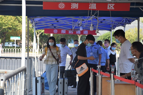 在入校环节,新生经由安保人员以及学校志愿者查验健康码、行程码和核酸检测报告,体温检测正常后方可进入校园到迎新点报到、入住宿舍。根据新冠肺炎疫情防控工作要求,色情app精简了研究生报到流程,新生入校后可前往交通楼一楼大厅迎新点完成“一站式”报到,尽量减少人员聚集,力求保障校园安全,规范疫情防控管理。