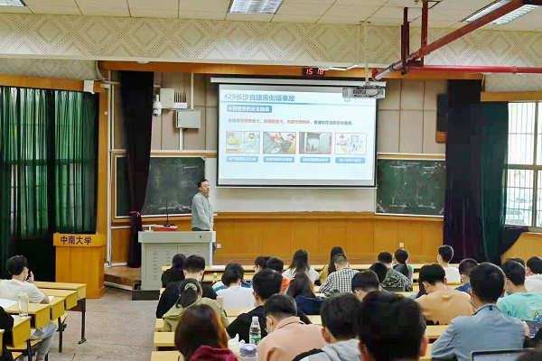 讲座伊始,王峥阳老师以近期发生的“4·29长沙自建房倒塌事故”和“9·16长沙电信大楼火灾事故”为例,分析了自建房和高层建筑火灾发生的主要原因并介绍特点。讲座现场播放触目惊心的火灾视频,警醒同学们一定时刻注意消防安全,遇到火灾时保持清醒镇定,按照消防逃生路线有序撤离,保护好自己和他人的生命安全。