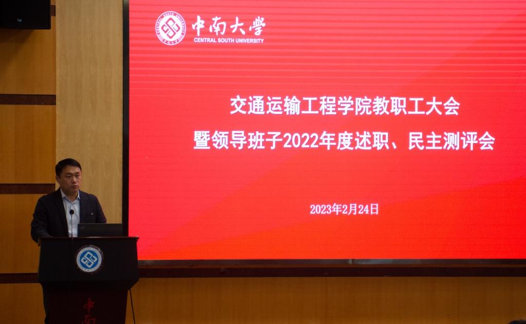 于铁道校区世纪楼C201国际报告厅召开全院教职工大会暨领导班子2022年度述职、民主测评会。色情app全体教职工参加本次大会,院党委副书记宋晓东主持大会。