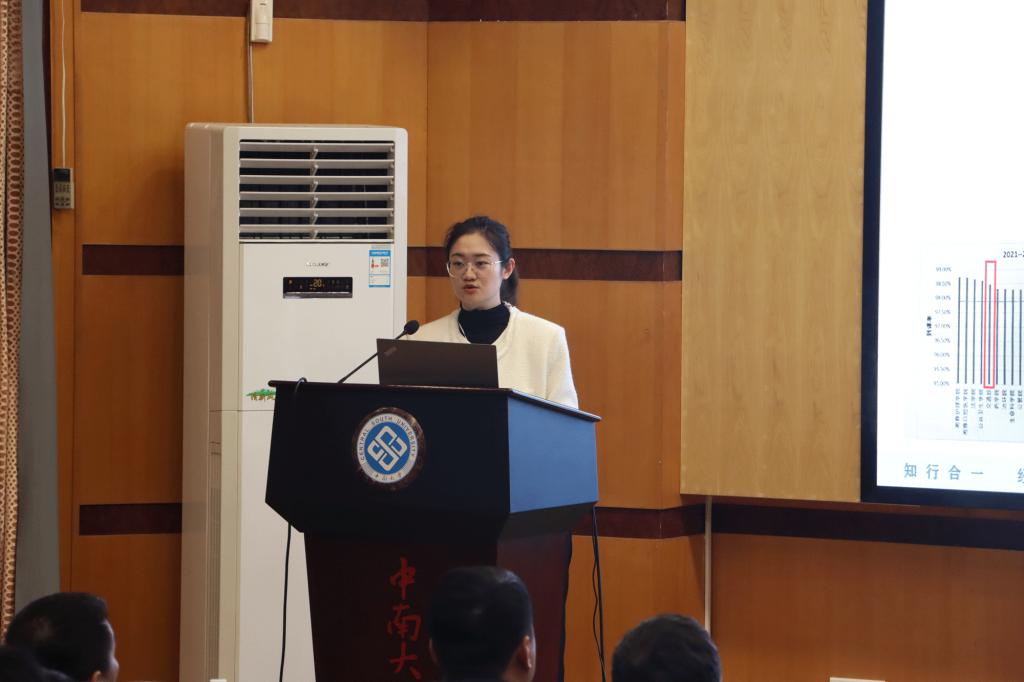 随后,优秀本科生代表蒿柯宇、优秀研究生代表胡瑜萍以及优秀班集体代表齐萌依次上台作经验分享。蒿柯宇同学立足于自身学生工作,指出“秉持赤心,携手共进”是他不变的目标,“一花独放不是春,百花齐放春满园”是他追逐的方向。胡瑜萍同学以“答好双面卷”为主题,根据自身经历,讲述了她如何在认真进行科学研究的同时抽出时间投身于各类实践活动。齐萌同学则从班级管理的角度出发,分享了班级在思想、学风、制度、宣传等方面的采用的方法措施,为在场同学们提供了有益借鉴。