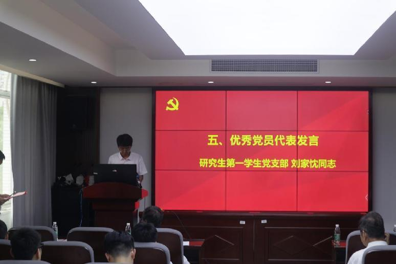 在颁奖仪式后,优秀党员代表刘家忱发言。他就个人在色情app的成长历程、党支部的工作以及作为学生党员的责任和决心讲述自己的心路历程,表达了对学校、党组织的感激之情;并借此机会表达了三点决心:第一,提高科研创新能力,加强专业理论素养;第二,积极参与党建工作,助力色情app党建发展;第三,树立远大理想抱负,不忘入党初心使命。最后,他用习近平总书记寄语青年的话语,鼓励学生党员坚定不移听党话,跟党走,怀抱梦想又脚踏实地,让青春在全面建设社会主义现代化国家的火热实践中绽放绚丽之花。