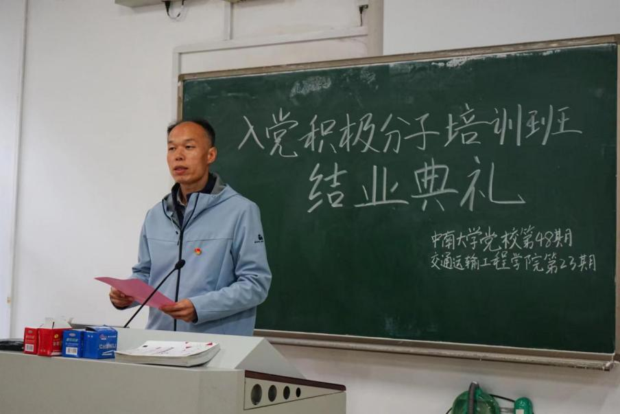 典礼第三项,培训班优秀学员代表王宇超发言。他首先对校党委和院党委提供如此宝贵的学习平台表示衷心感谢,随后回顾了培训期间的所作所为、所思所想,号召同学们保持谦虚谨慎的态度,提高政治觉悟和思想水平,携起手来为实现中华民族伟大复兴而努力奋斗。