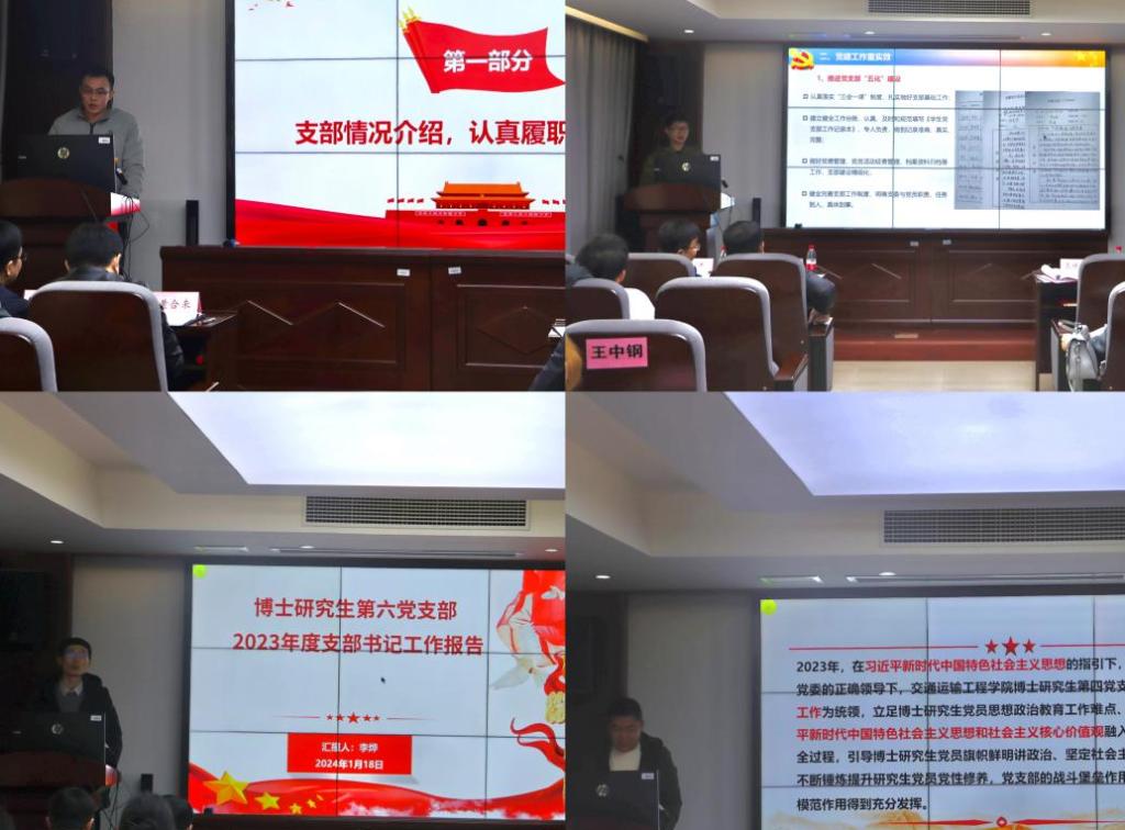 本次述职采取“一述一评”方式进行,大会伊始,交通运输系、交通设备系、物流工程系、高速列车研究中心4位教工党支部书记针对2023年支部整体建设情况,以及支部党员在夯实师德师风建设,助推学科建设与人才培养,丰富组织生活内容等方面的工作成效进行详细介绍,同时反思总结了目前支部建设存在的问题和改进措施。党委书记袁世平逐一进行点评,并就各教工党支部实际情况,提出瞄准支部建设短板、加强党建和科研相互融合、持续建设一流专业、创新党日活动形式、积极推进智慧型党建等建议。
