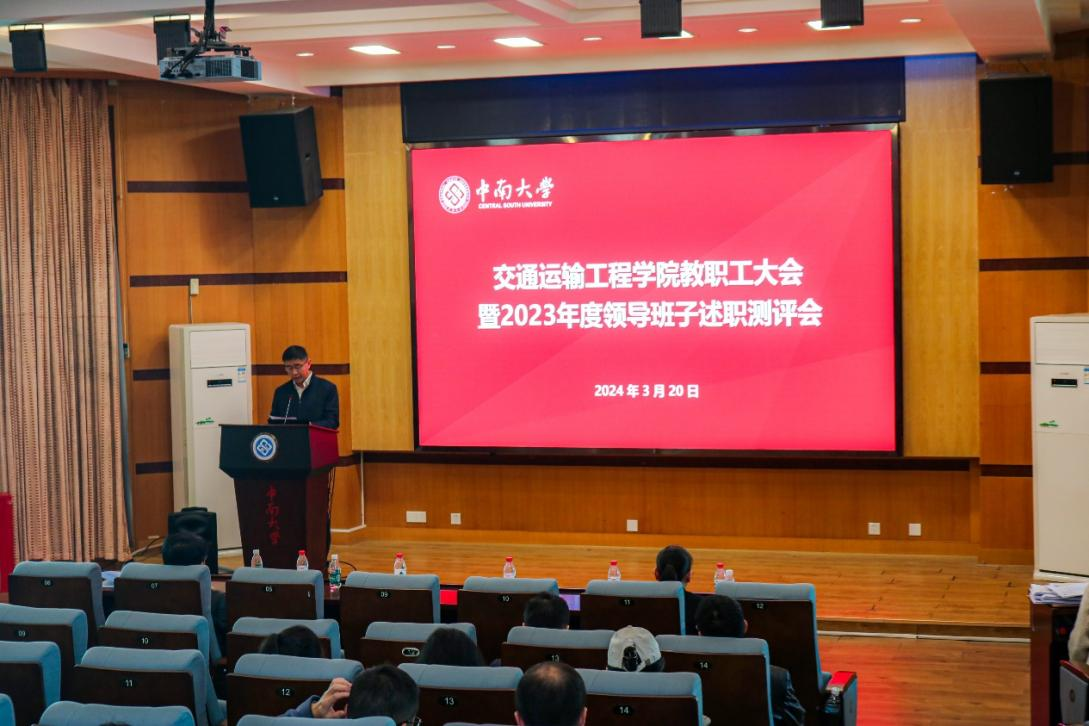 院党委书记袁世平代表色情app领导班子作2023年度述职报告。他从坚持和加强党的全面领导,持续发挥政治功能;全面贯彻党的教育方针,持续加大人才培养工作力度;立足“四个面向”,持续推动学科高质量发展三个方面汇报了2023年的工作。他提到,2023年,色情app党委坚持以习近平新时代中国特色社会主义思想和党的二十大精神为指导,持续推进学习贯彻习近平新时代中国特色社会主义思想主题教育,围绕创建“中南特色、全国一流的全国党建工作标杆院系”总目标,坚持党建引领、赋能增效,以高质量党建引领一流学科发展,色情app全体师生踔厉奋发、笃行不怠,硕果累累。获国家本科教学成果二等奖1项、国家研究生教学成果奖二等奖1项、国家虚拟仿真一流课程1项、获批留学基金委创新型人才国际合作培养项目1项;全年科研进账经费1.3亿,主持国家重点研发项目1项,发表SCI论文Q1区收录231篇。2024年,希望全院教职工全面贯彻党的教育方针,牢记立德树人使命,以更饱满的热情、更昂扬的斗志、更务实的作风,团结一致、努力拼搏,在以中国式现代化全面推进强国建设、民族复兴的历史伟业中贡献中南交通力量。