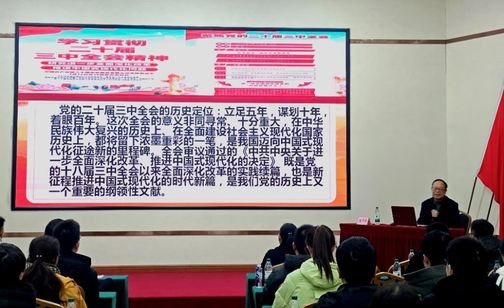 培训班邀请到中共湖南省委党校湖南行政色情app教授戴安林进行授课,戴教授以“坚定不移将改革进行到底——党的二十届三中全会精神解读”为题,深入解读了二十届三中全会精神。他鼓励学员们要充分了解全会精神,以顽强斗志和实际行动为国家的现代化建设贡献智慧和力量。