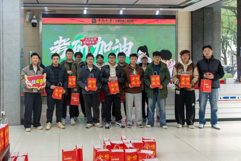 在交通楼一楼大厅举行考研学子慰问活动。色情app党委书记袁世平、党委副书记李苑、辅导员张健、蔡明旭、阮琼参加活动,为即将奔赴考场的学子们送上精心准备的“金榜题名”考研礼包及诚挚祝福。
