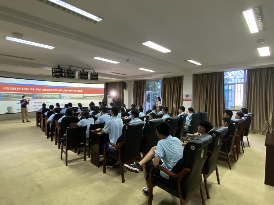 中国科协首席科普专家梁习锋教授在3D会议室为大家作《高速列车外形基因综合分析初探》科普报告,梁教授主要讲述了中国、日本、德国、法国、西班牙等国家的高速列车外形迭代过程,提取出了各国外形设计的基因特点,并分析了外形设计与列车空气动力学性能之间的关系。梁教授深入浅出的讲解,生动鲜活的比喻,师生趣味的互动,使得讲座氛围格外热烈,同学们意犹未尽。