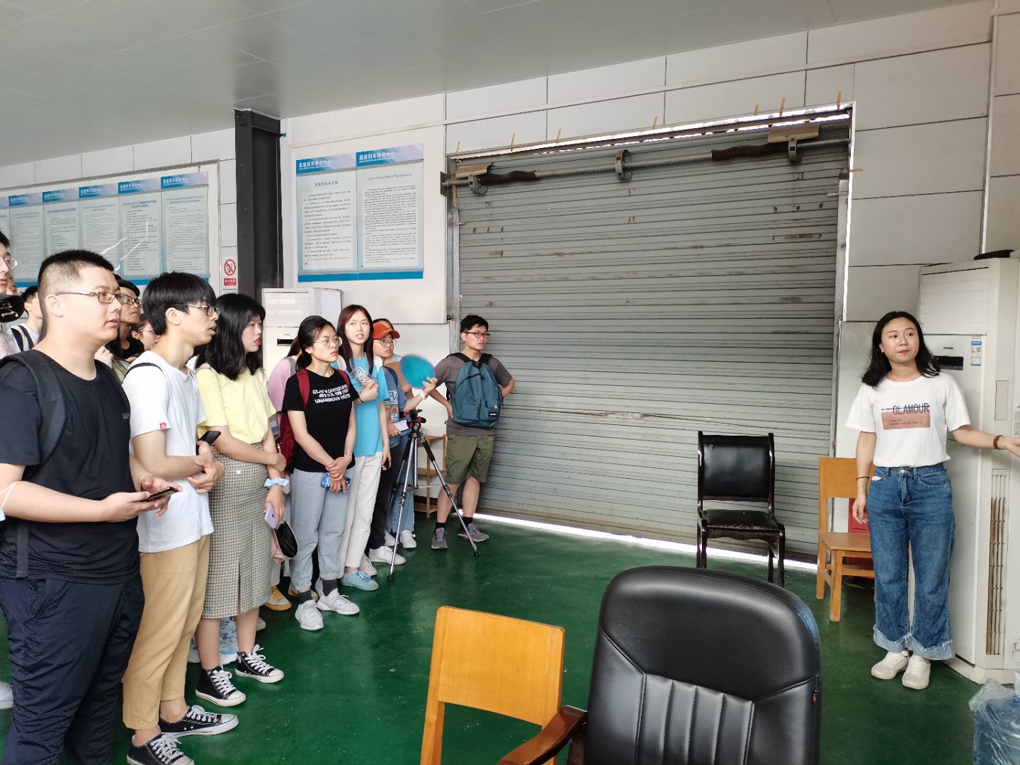 紧接着,在志愿者孙勇的带领下,来到了相隔不远的碰撞实验室,由志愿者陈伊琪向大家播放了相关实验视频,并引领同学们参观了实验室外部陈列的实验过后的列车装置,详细地讲解了最新实车实验项目的内容,一一解答了同学们的提问。