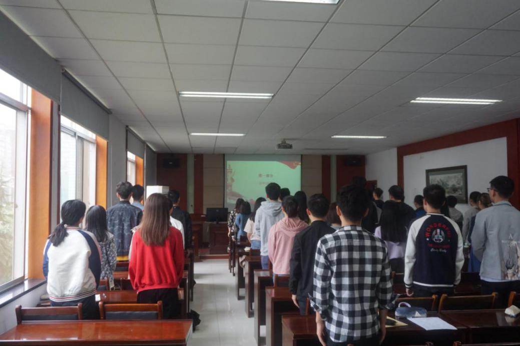 今年是中华人民共和国成立70周年,为弘扬同学们的爱国主义精神,激发参会学生的民族自豪感和自信心,会议伊始,全体同志起立高唱国歌。