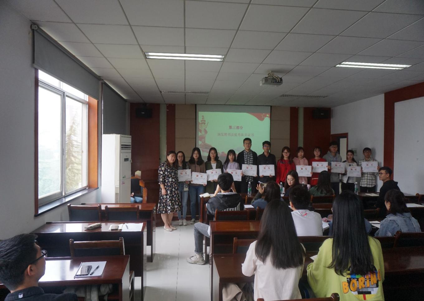 接下来,韩艳老师为上一届分党校管理部、先进轨道交通科普基地成员颁发聘书,陈晨老师为科普志愿队伍成员颁发先进轨道交通科普基地优秀队员证书,表达了对各位同志奉献精神的认可与肯定。