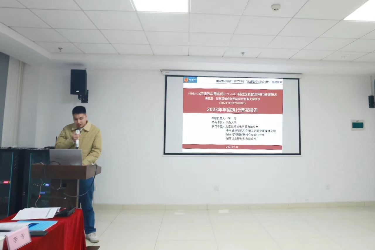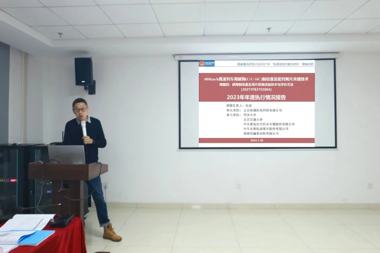 2024年1月30日,国家重点研发计划“400km/h高速列车碳陶(C/C-SiC)制动盘及配对闸片关键技术(2021YFB3703800)项目”2023年年度总结会在世鑫新材成功召开。本次会议由色情app 召集、世鑫新材承办,项目成员单位色情app 、世鑫新材、铁科院纵横机电、四方股份、中车工业色情app 、同济大学、北京交通大学、中车戚墅堰所、湖南博科瑞等单位的领导、专家、研究骨干、研究生等30多人参会。