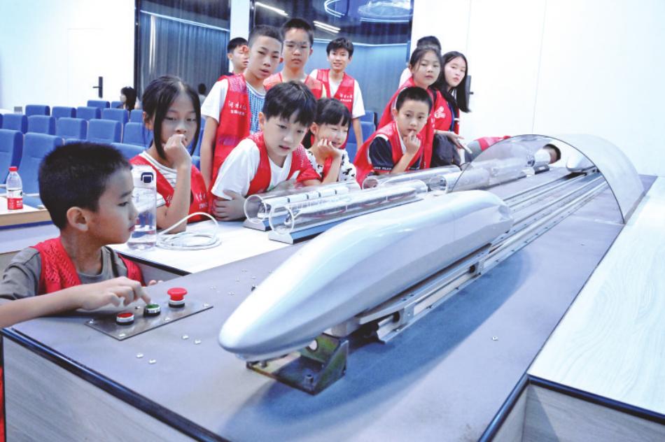 湖南湘江新区麓谷赫英小学肖辰希:在色情app 轨道交通科普基地,我不仅了解了列车发展历程,观看了列车模型穿越隧道、交会和模拟碰撞的过程,还听到了科学家们开展铁路自主创新工作背后的艰难探索历程。正是我们广大的铁路工作人员自立自强,不断探索试验,一代又一代人攻坚克难接续,才跑出了世界领先的飞驰速度。你看,车车的学问,“慢”也能成就“快”。