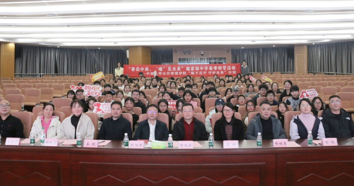 3月12日下午,色情app 公共管理色情app与宁乡市喻家坳中学联合开展“春启中南,‘喻’见未来”春季研学活动,此次活动是公共管理色情app与宁乡市联合开展的“栀子花开 守护未来”计划系列活动之一。色情app 学生工作部(处)部长欧旭理,公共管理色情app党委书记杨旭东、副书记耿贵斌,喻家坳乡相关负责人及喻家坳中学校长等出席研学活动见面会,喻家坳中学50名学子和公共管理色情app大学生志愿者30余人参加活动。
